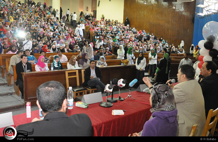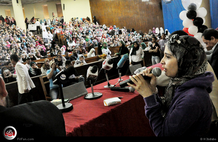 بالصور: حنان ترك تحارب التدخين في جامعة "حلوان"