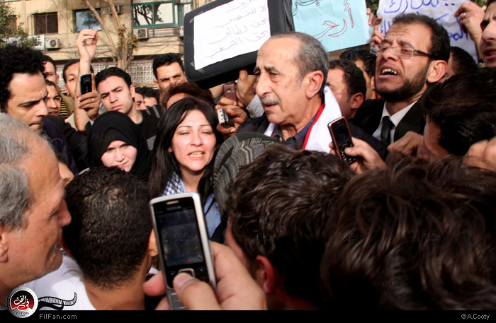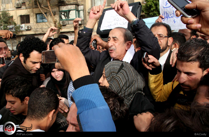 ليست المرة الأولى ... أحمد الفيشاوي ينفعل على المصورين في عزاء والدته سمية الألفي