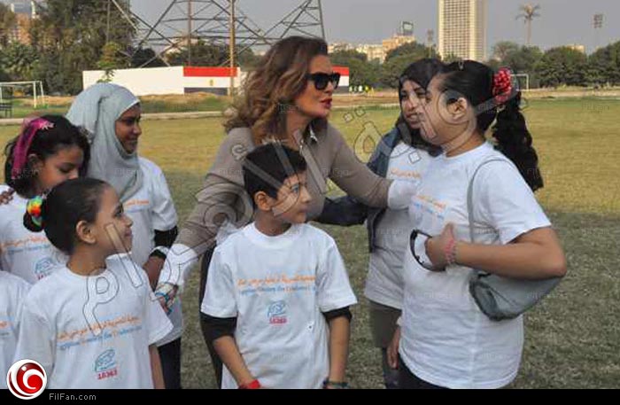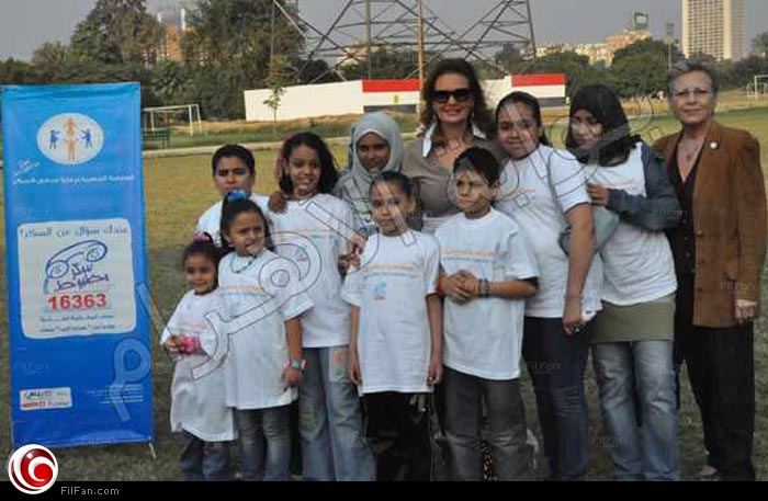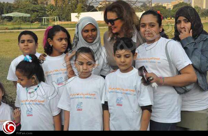 عمر رياض وليلى حسين في زيارة لمستشفى "سرطان الأطفال 57357"