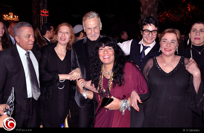 منة شلبي وخالد أبو النجا مع المخرج الايطالي ماركو بينو واعضاء لجنة تحكيم المسابقة الدولية