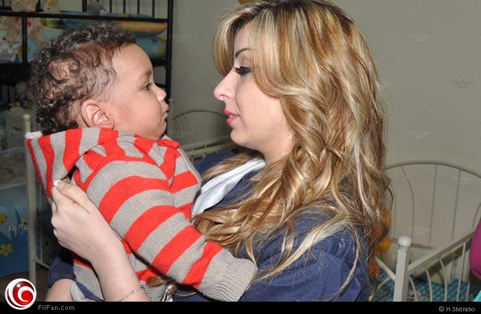 إحدى جميلات العرب تشارك الأيتام اللعب
