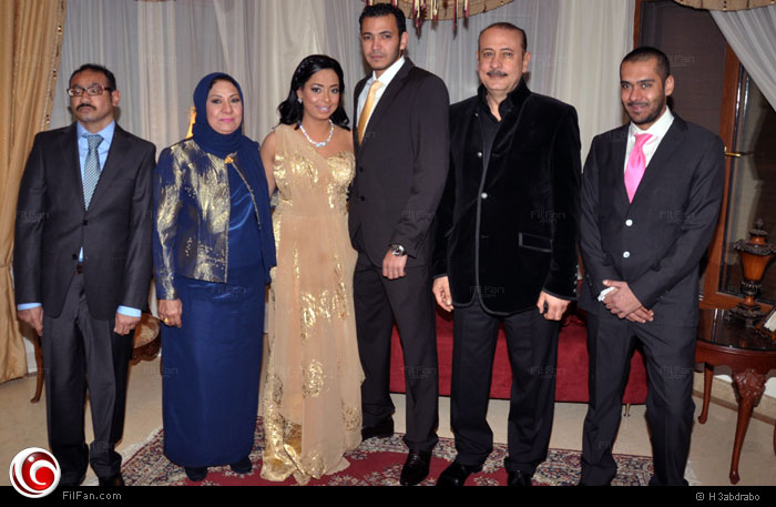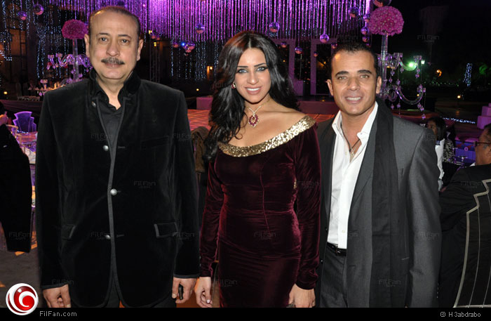 حضرت المطربة أنغام والممثلة داليا البحيري وفريق عمل مسلسل "في غمضة عين" حفل خطوبة ابنة منتجه عمر مكين.