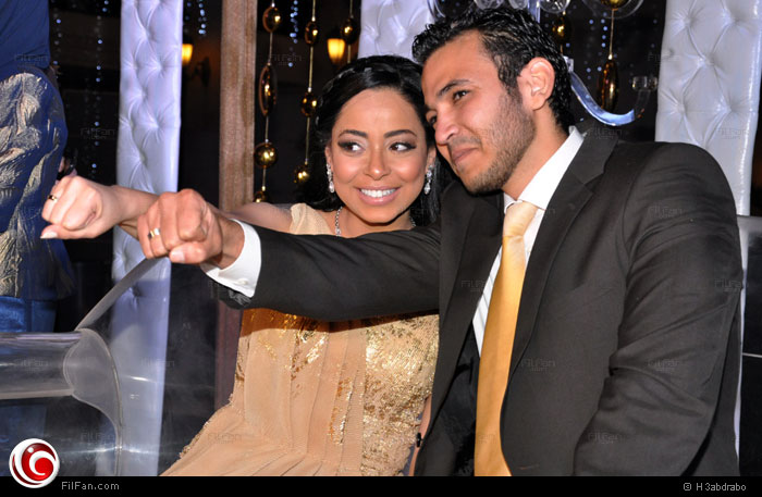 كريم محمود عبد العزيز ودينا الشربيني في العرض الخاص لفيلم "طلقني" والعروسان حاتم صلاح وزوجته أبرز الحضور