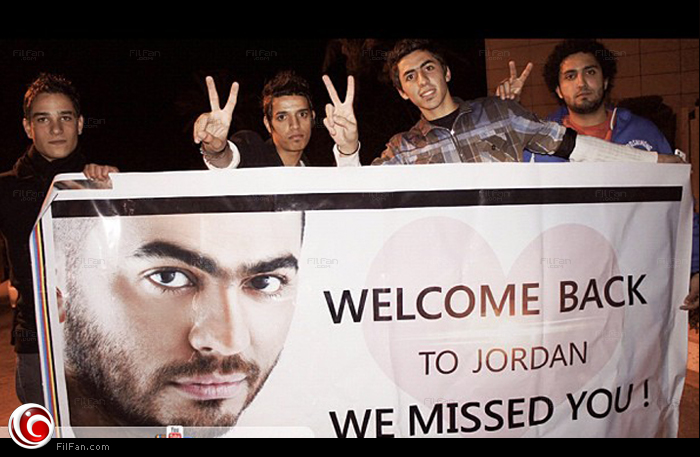محبي تامر حسني يرحبون بوصوله للعاصمة الأردنية عمان