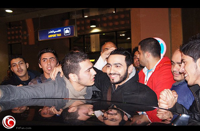 كالعادة تجمع محبي تامر في المطار لاستقباله