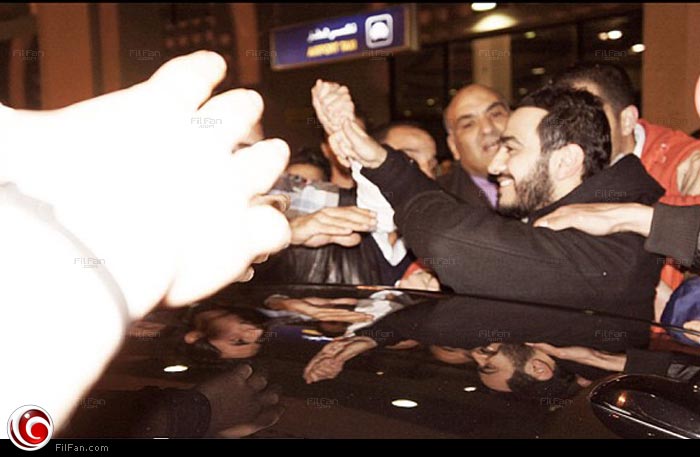 تامر حسني يحيي محبيه في المطار