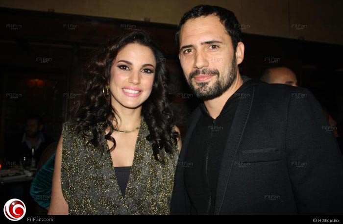 كريم محمود عبد العزيز ودينا الشربيني في العرض الخاص لفيلم "طلقني" والعروسان حاتم صلاح وزوجته أبرز الحضور