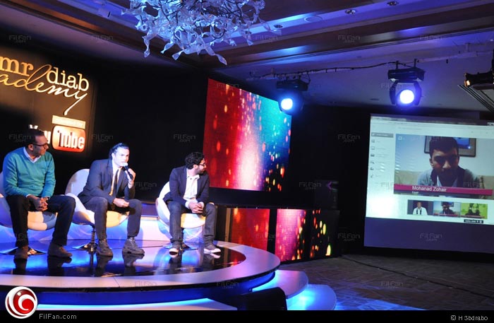 حضر النجم عمرو دياب المؤتمر الصحفي الخاص بإعلان أسماء الفائزين بلقب أفضل صوت في الأكاديمية التي دشنها النجم الكبير مؤخرا.