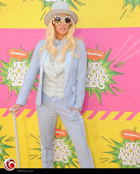 كيشا ترتدي أزياء طريفة ونظارة مضحكة من أجل حفل جوائز الأطفال