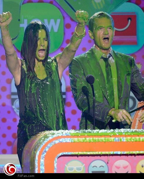 ساندرا بوليك سعيدة بالسائل الأخضر اللزج مع نيل باتريك في حفل جوائز قناة الأطفال "Nickelodeon"