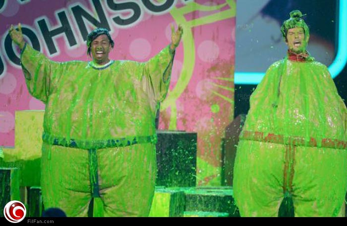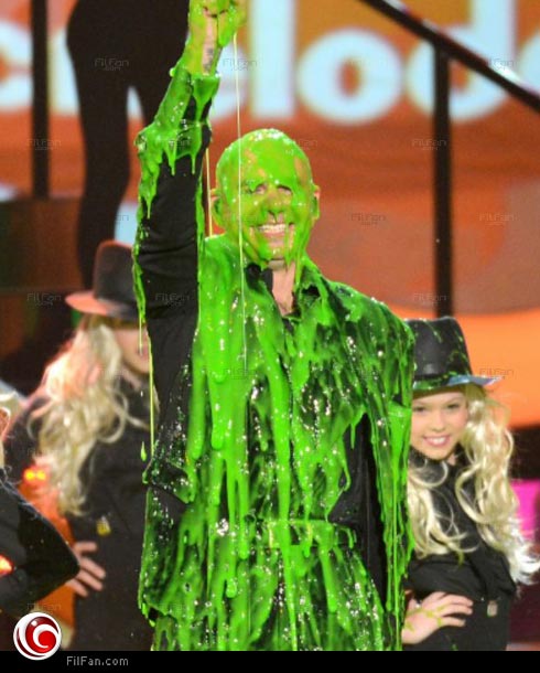 نجوم هوليوود يمرحون في حفل جوائز قناة "Nickelodeon" بعد ترشيح الأطفال لهم، ويلعبون بالسائل الأخضر اللزج التي شتهر بها شعار القناة.