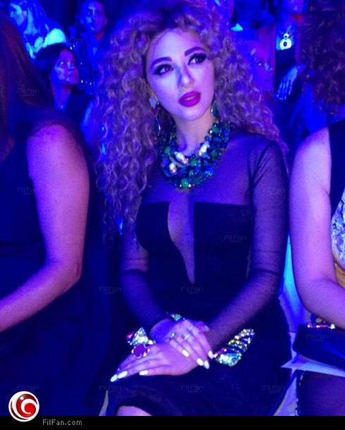 ماريام فارس أثناء مشاهدتها لعرض الأزياء