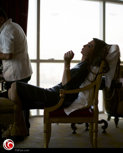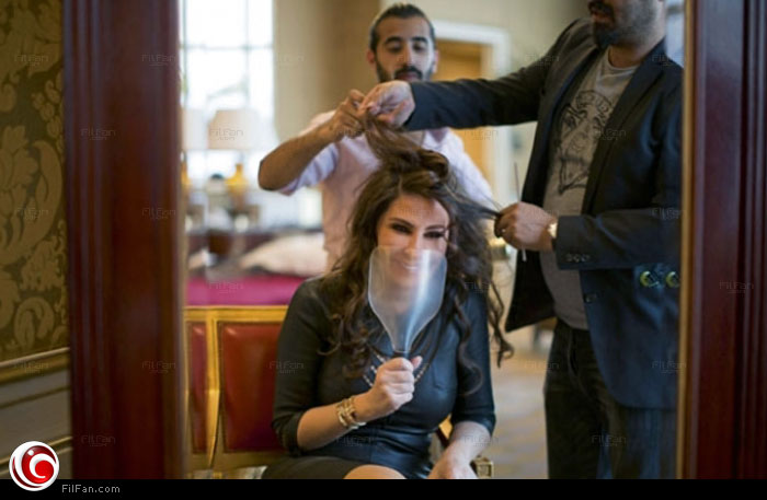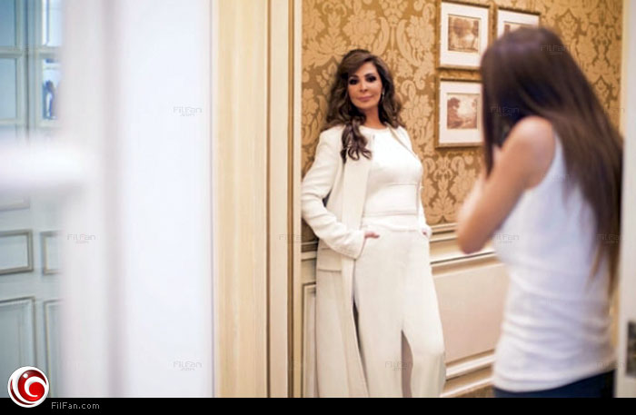 إليسا ظهرت في الصور وهي تستعد للتصوير وتختار ثيابها وتضع الماكياج.