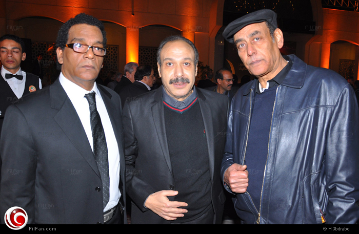 خالد صالح يتوسط أحمد بدير والمؤلف أحمد عبد الله
