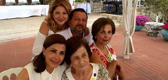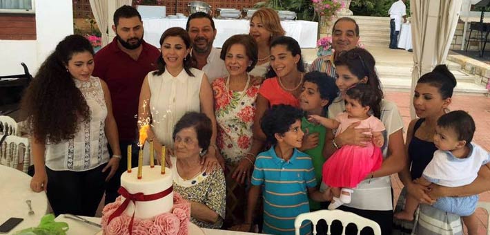 ماجدة الرومي وأسرتها في احتفالهم بعيد ميلاد والدتها.