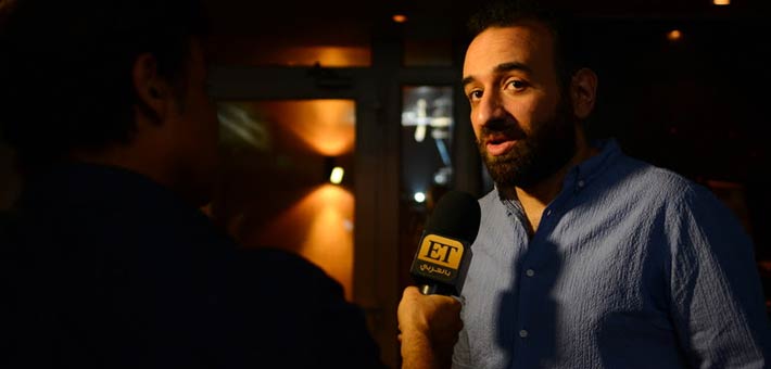 عمرو سلامة يصور لقاء تلفزيون أثناء الاحتفال.