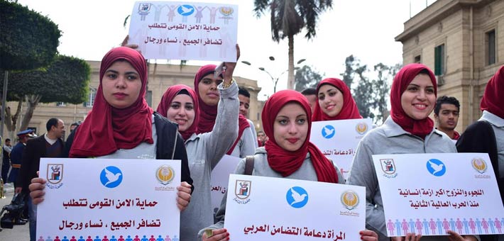 مسيرة نجوم الفن بجامعة القاهرة لدعم المرأة