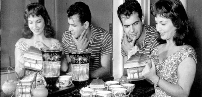 شادية وكمال الشناوي و شكري سرحان والمخرج يوسف شاهين.