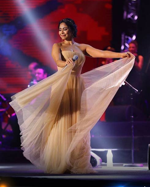 فستان مختلف عن أغلب اختيارات ميريام فارس ويناسبها من تصميم مارشيسيا
