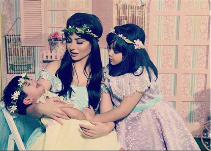 المذيعة الكويتية حليمة بولند مع ابنتيها ماريا وكاميليا.
