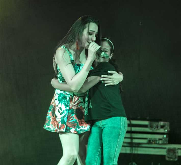 حرصت ساندي على أن تلتقط الصور مع جمهورها من الشباب والأطفال كما تألقت بفستان من تصميم (ديزني ستور) مليء بالورود يلائم أجواء الصيف.