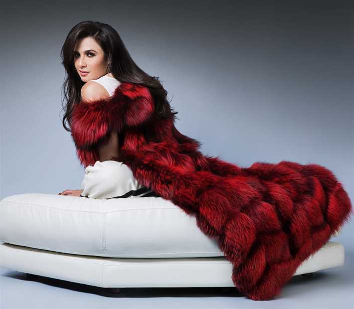 وغلب على جلسة التصوير اللون الأحمر بسبب المعطف الفرو الذي ارتدته ياسمين على ملابسها.