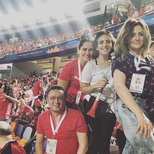 أمير شاهين وريهام حجاج وزوجها وبعض الأصدقاء في مباراة مصر والكونغو