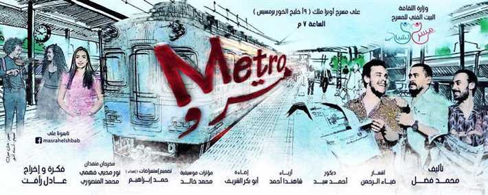 وعلى مسرح ملك برمسيس تقدم عرض " مترو" في تمام الثامنة مساء، من تأليف محمد فضل، وإخراج عادل رأفت، من بطولة أحمد عثمان، شريهان قطب، خالد شرشابي، أحمد عمار.