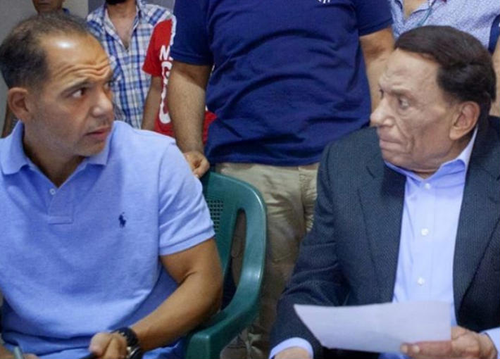 عادل إمام يستعد لتصوير مشهد مع المخرج رامي إمام