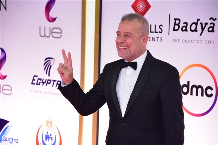 أمير المصري ببدلة أنيقة ووشاح مميز