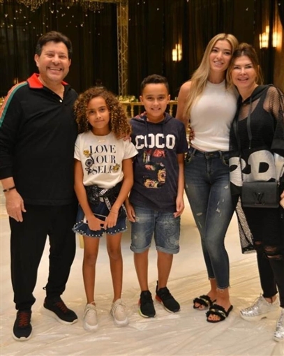 مع زوجته وأحفاده من ابنته الراحلة
