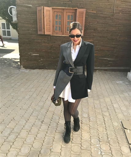 اللون المناسب للشتاء … ملك أحمد زاهر تستعرض رشاقتها بفستان أسود ضيق