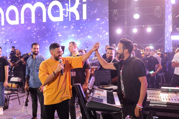 كما وجه حماقي الشكر لطارق صبري لتوزيع الإضاءة والشاشات ومصمم المسرح أحمد حمامصي.