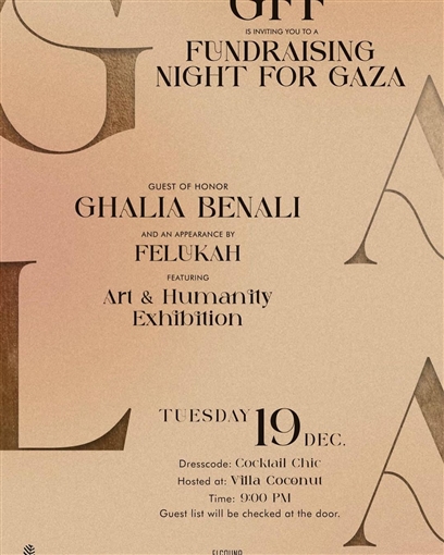 إلهام شاهين والنجوم في حفل العشاء الخيري لصالح غزة