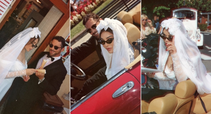 وظهرت هيفاء وهبي في الصور بفستان زفاف مع بطل الكليب في لقطات رومانسية حازت إعجاب جمهورها.