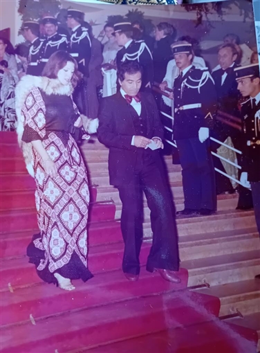 شمس البارودي وحسن يوسف خلال حضورهما أحد المهرجانات العالمية