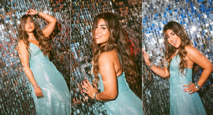 أطلت أيتن عامر في جلسة التصوير بفستان أزرق لامع أبرز رشاقتها، مع مكياج أبرز ملامح وجهها، وتركت شعرها منسدلا على كتفيها، وحصدت إطلالتها إعجاب متابعيها.
