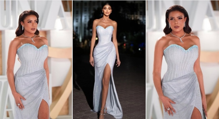 #شرطة_الموضة: رزان جمال بفستان من التل المطرز من إيلي صعب … سعره 308 آلاف جنيه مصري