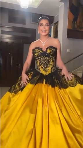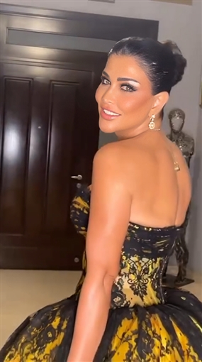 مي فاروق بفستان مخملي في موسم الرياض من تصميم أيمن لحموني