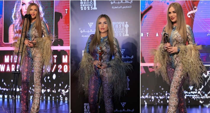 أطلت النجمة نيكول سابا في حفل توزيع جوائز الموسيقى العربية MEMA بإطلالة جريئة.