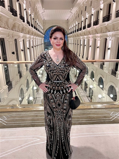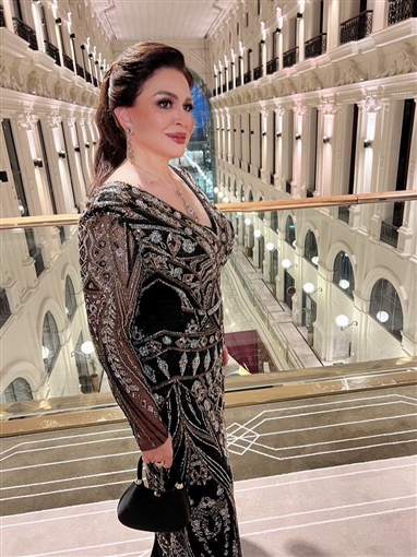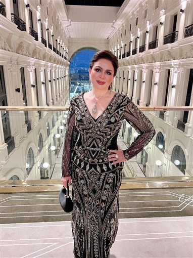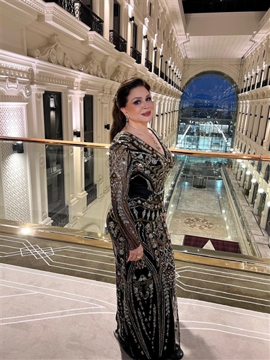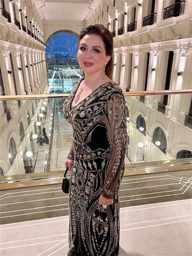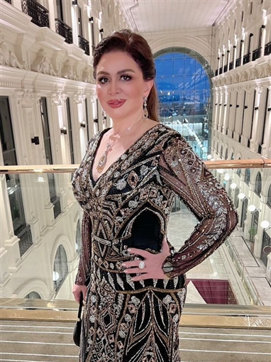 وأطلت إلهام شاهين بفستان جمع بين الفخامة والأناقة يحمل توقيع مصممة الأزياء المصرية منار مجدي، ونسقت إطلالتها مع حقيبة من ماركة Sergio rossi، وزوج أحذية من channel.