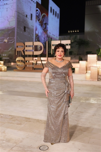 إلهام شاهين تتألق بإطلالة من تنسيق شقيقتها إيناس شاهين في اليوم الثاني لمهرجان البحر الأحمر السينمائي