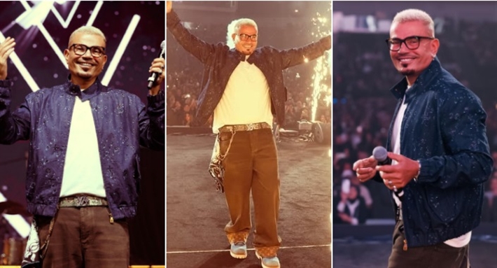 ارتدى "مفتاح الحياة" وقدم ميدلي أغانيه القديمة … لقطات من حفل عمرو دياب في قطر