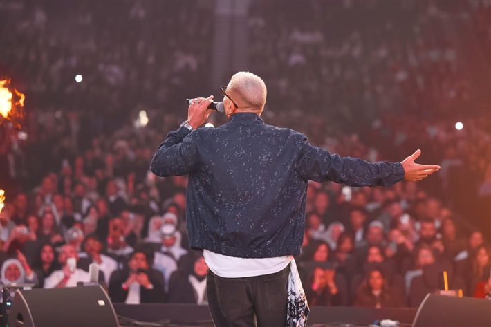 صعد الهضبة إلى المسرح وسط صيحات الجمهور، مقدمًا واحدة من أقوى حفلاته هذا العام، بمستوى بصري وصوتي غير مسبوق على أنغام أغنيته "يا أنا يا لأ".