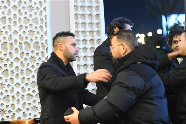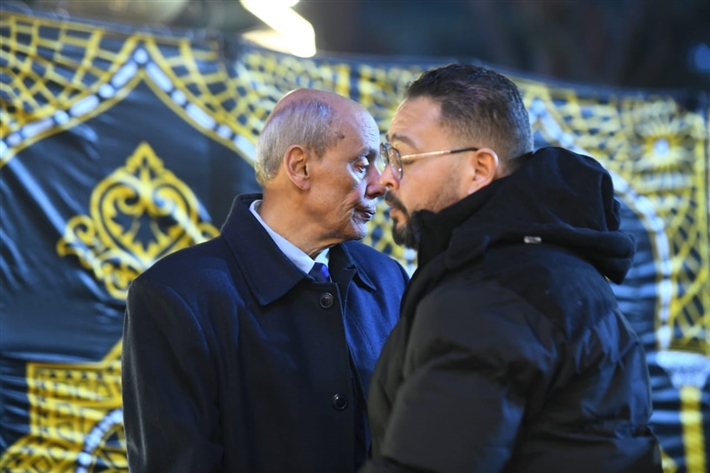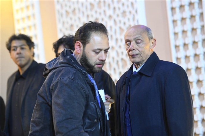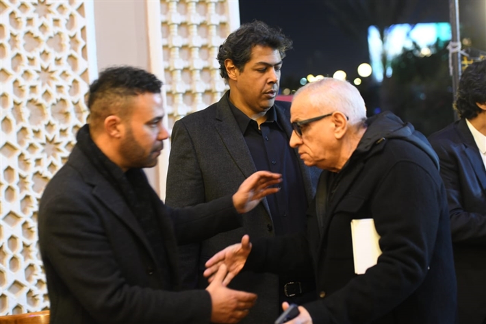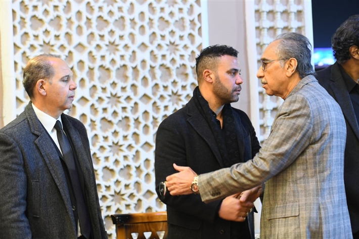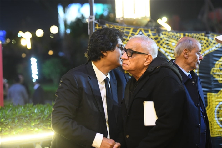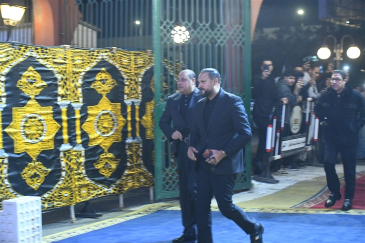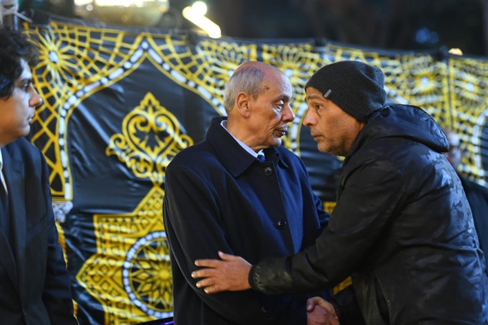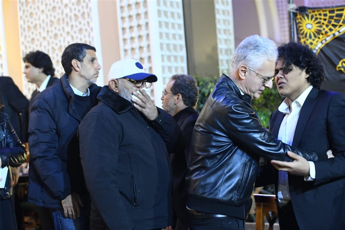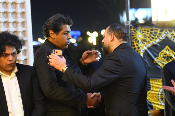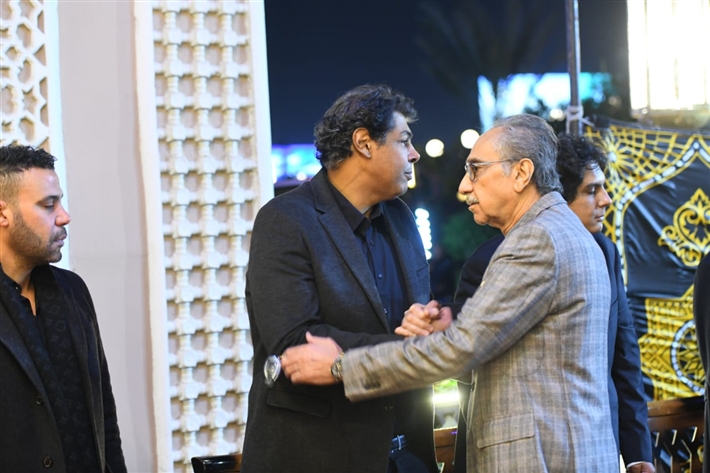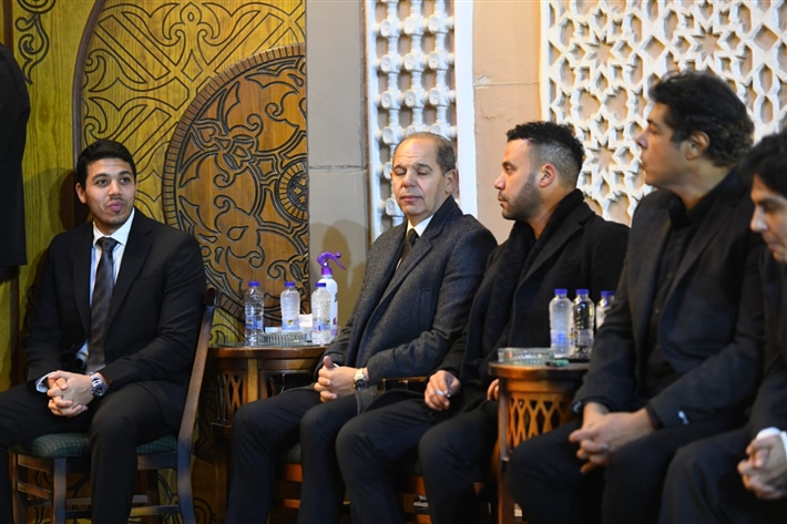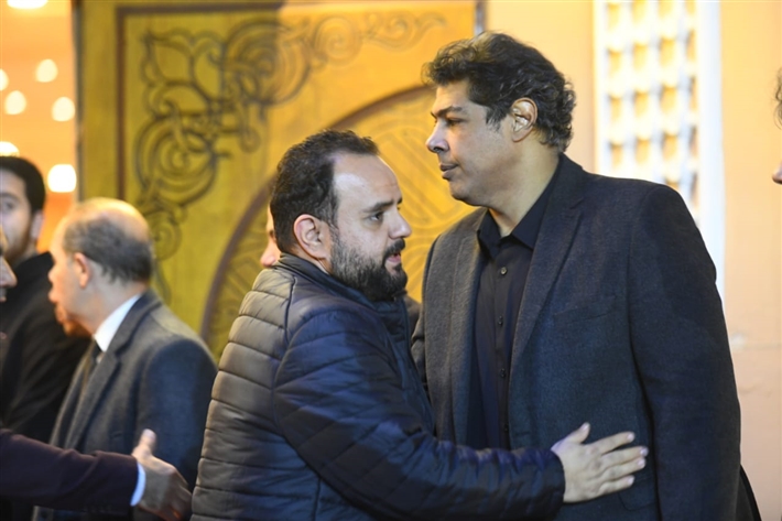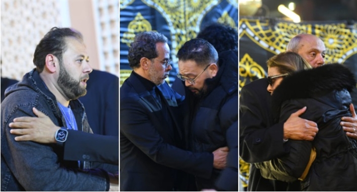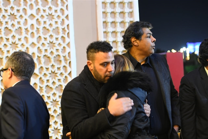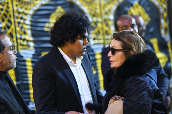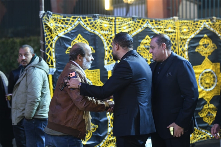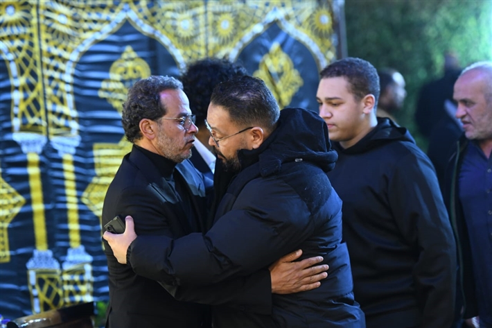أحمد السعدني وكريم محمود عبد العزيز وعلي ربيع وشيرين وأحمد السبكي في عزاء شقيقة عادل إمام