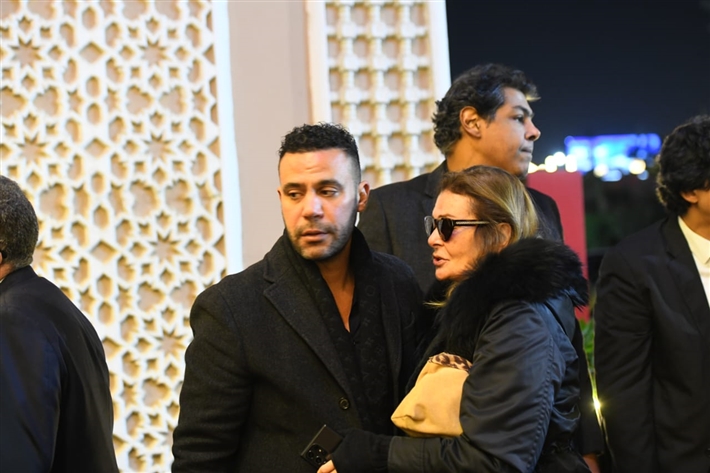 يسرا وصلاح عبد الله وعمرو يوسف في عزاء شقيقة عادل إمام