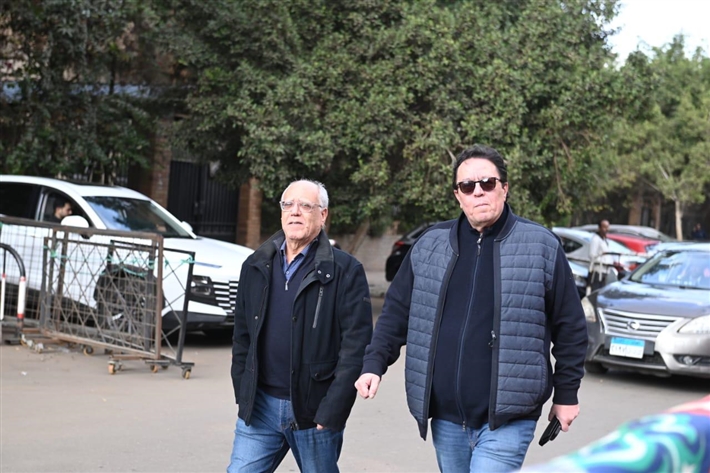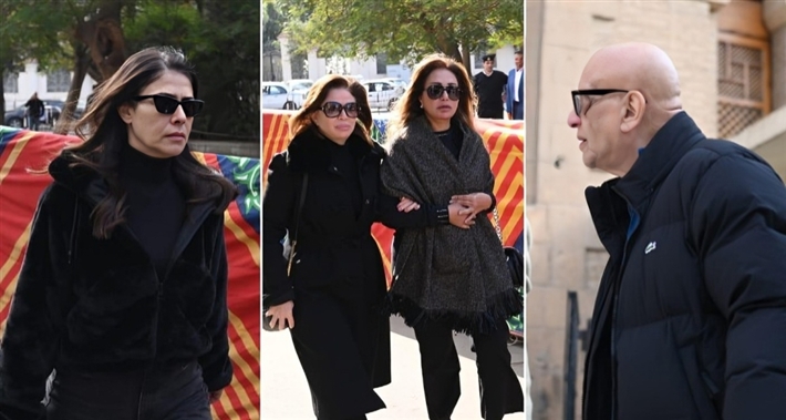أحمد السعدني وكريم محمود عبد العزيز وعلي ربيع وشيرين وأحمد السبكي في عزاء شقيقة عادل إمام