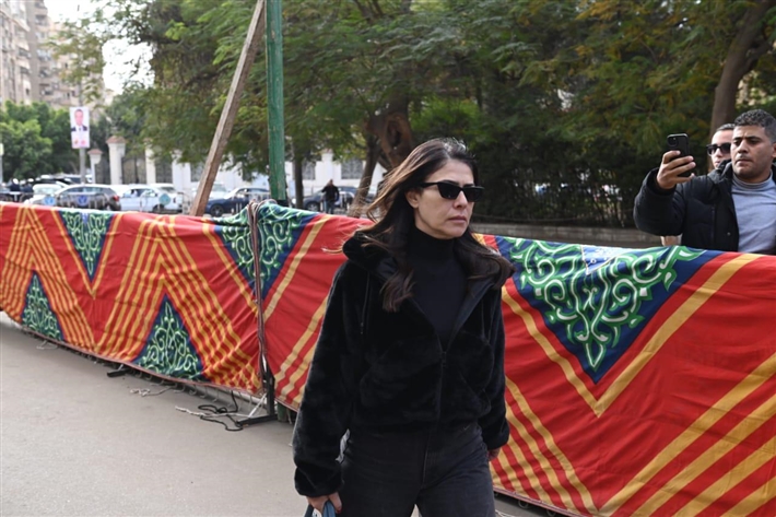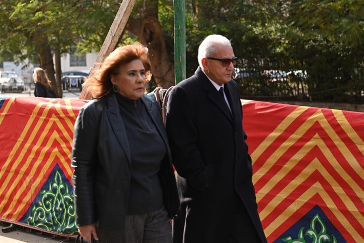 يسرا وصلاح عبد الله وعمرو يوسف في عزاء شقيقة عادل إمام