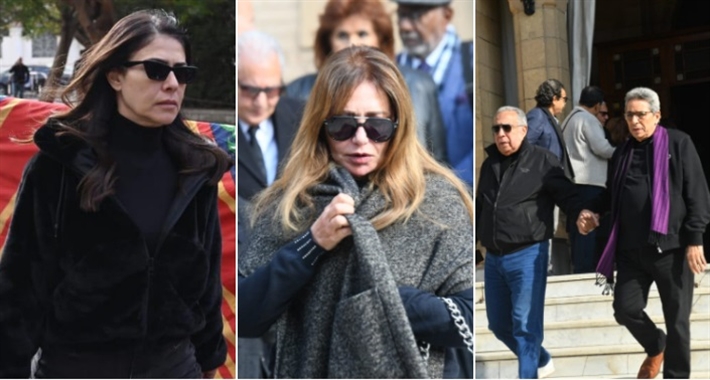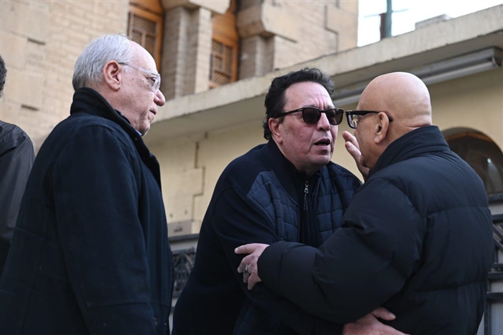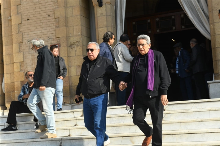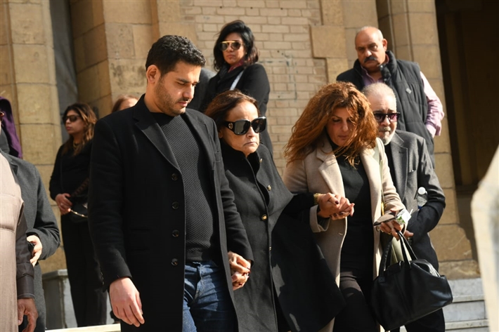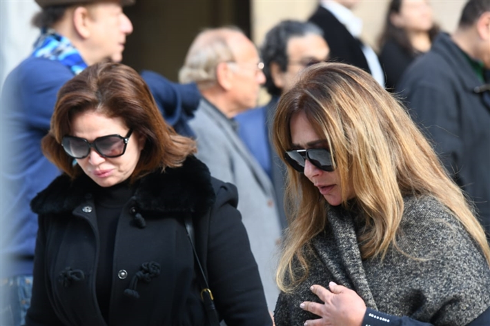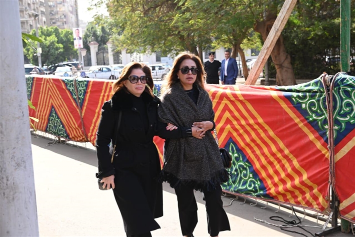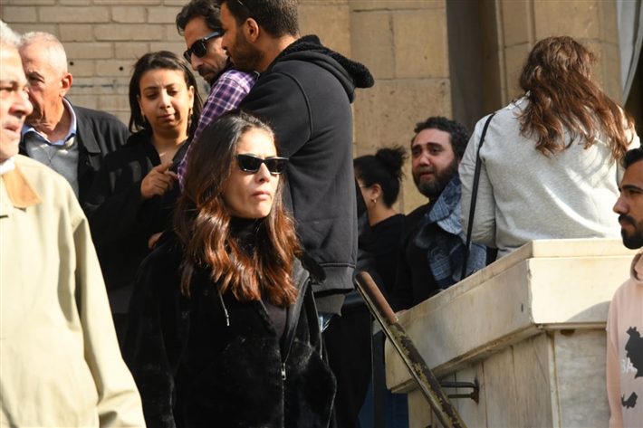 يسرا وصلاح عبد الله وعمرو يوسف في عزاء شقيقة عادل إمام