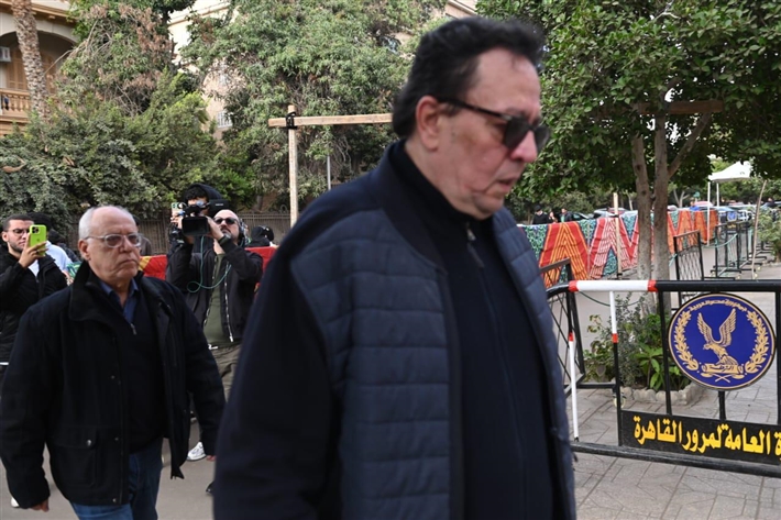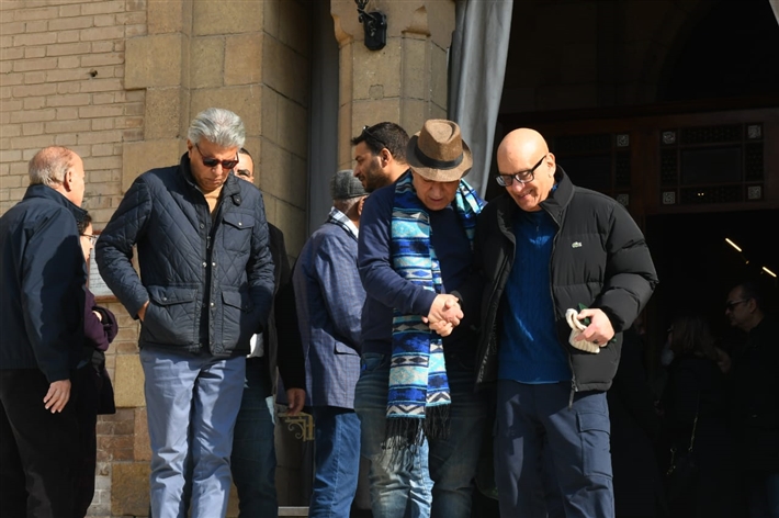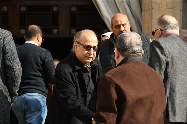 أحمد السعدني وكريم محمود عبد العزيز وعلي ربيع وشيرين وأحمد السبكي في عزاء شقيقة عادل إمام